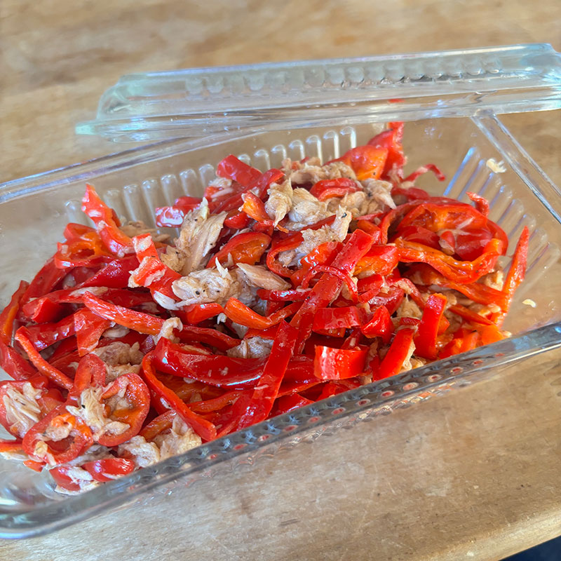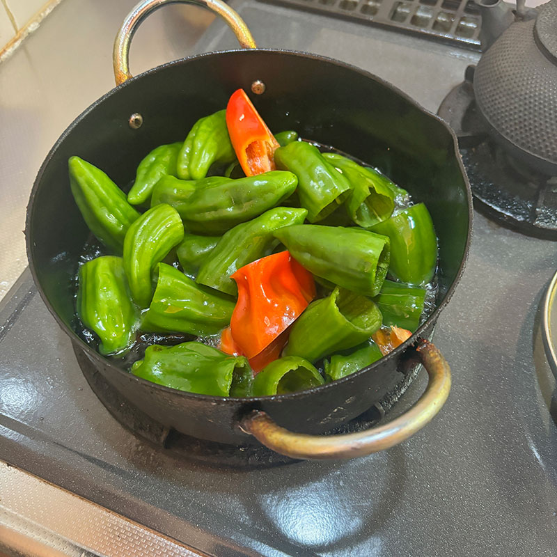 三田農園の三田さんにいただいた赤ピーマンは無限ピーマンに。きれい。