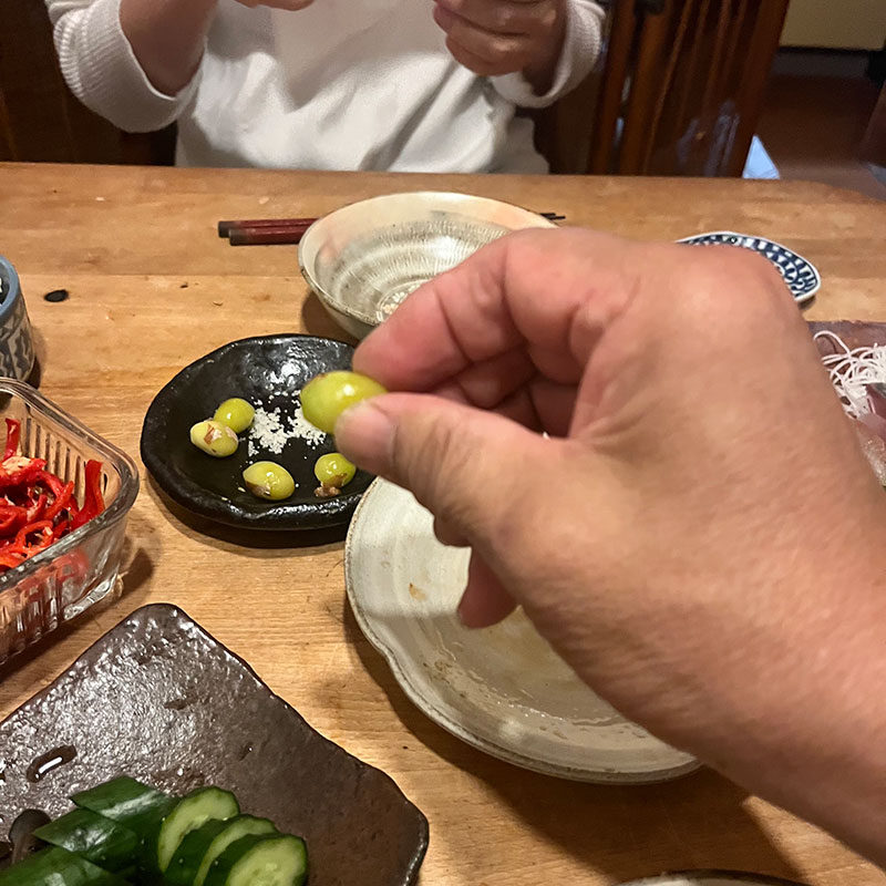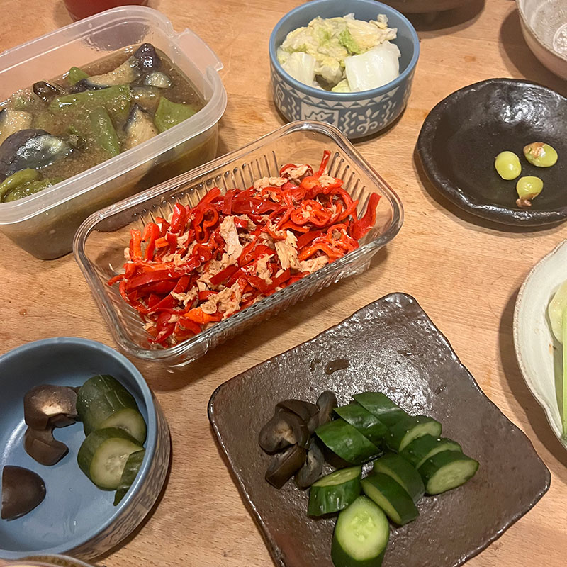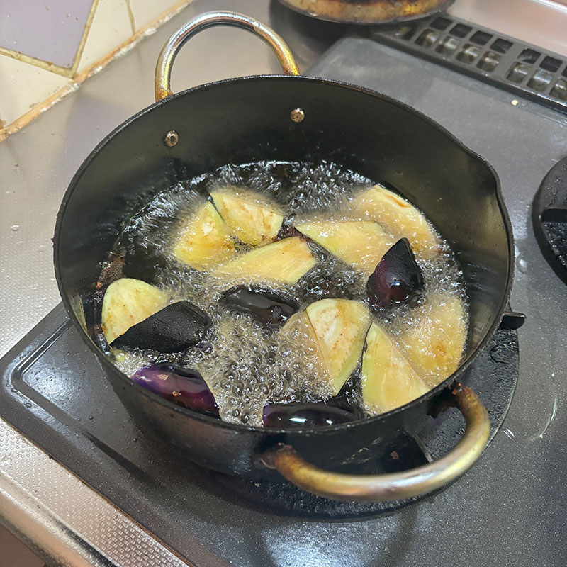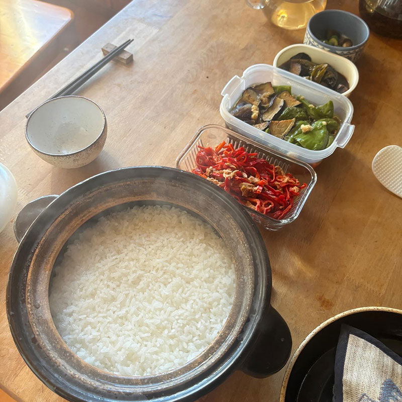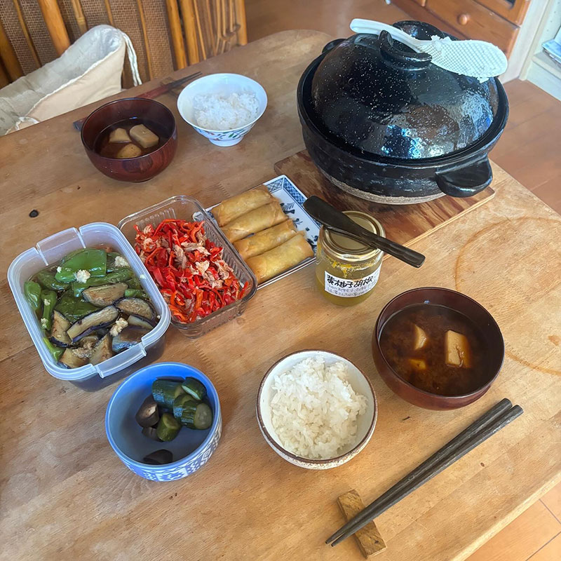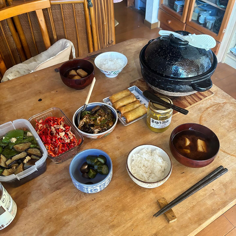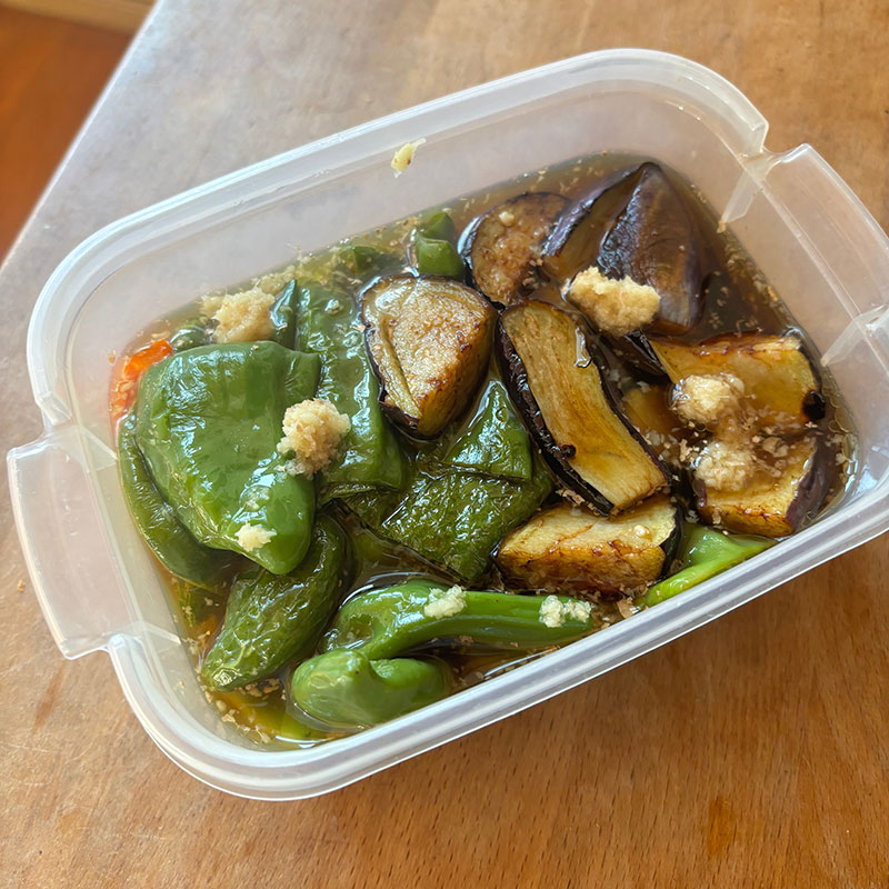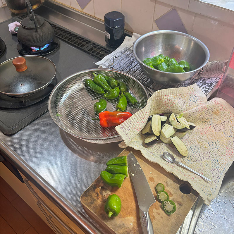 おかずは畑で採れてる茄子とピーマンだらけ。