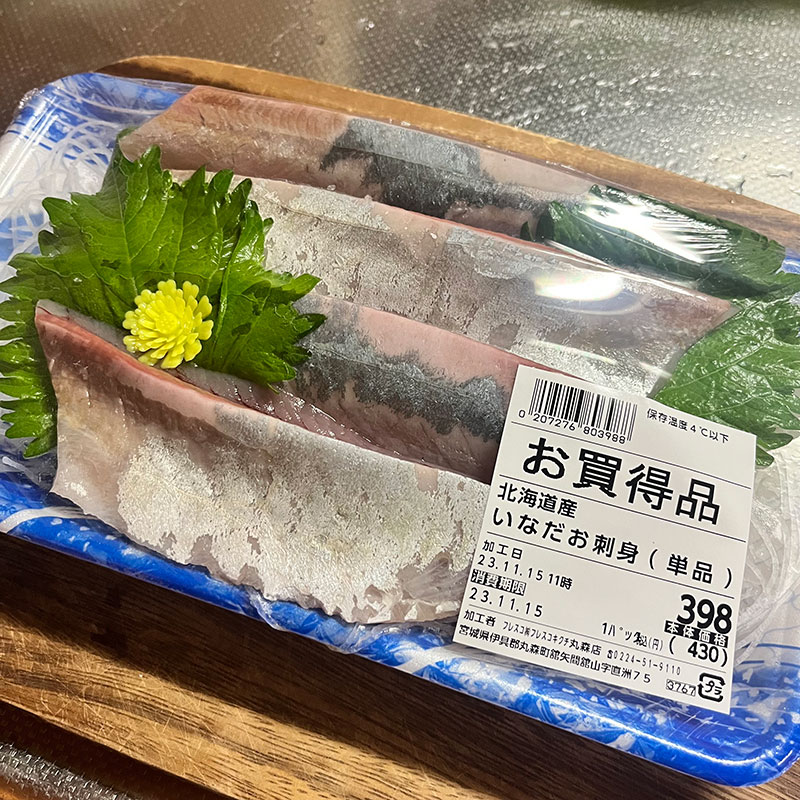 新鮮で美味しそうな いなだが安かったからってカミさんが買ってきたいなだの刺身。