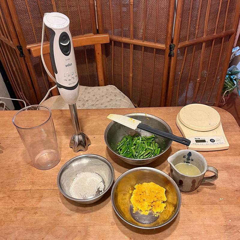 ハンドブレンダーにかけて出来上がり。
