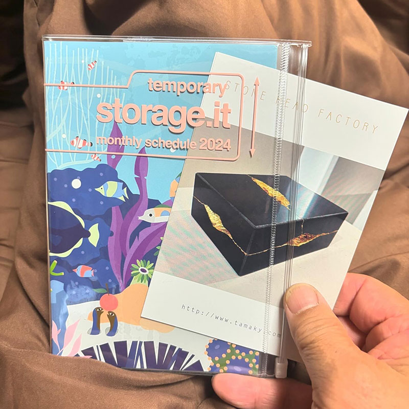 ネットで買った来年の手帳、届く。MARK’Sの定番ストレージ ドット イット。10年以上前、2009年に実家で正月を過ごしていた時に姪っ子たちと初売りに出かけた八王子のヴィレッジヴァンガードで見つけた。透明なカバーの中にチケットとか入れられるデザインと使いやすいページが気に入ってそれ以来ずっと使ってる。