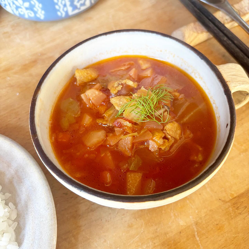 ボルシチにはディルを乗せたいところなんだけどとっくに枯れてるので今でも青々してるフェンネルを散らす。