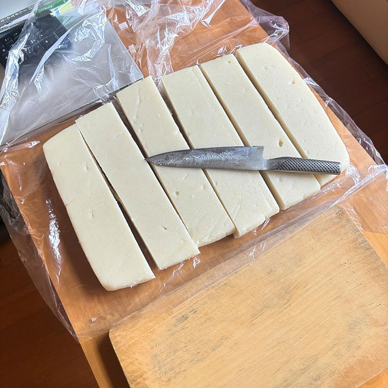 本当はもう少し乾かしてから切りたいところだけど年末年始の帰省前に切って冷蔵庫に入れておかないと