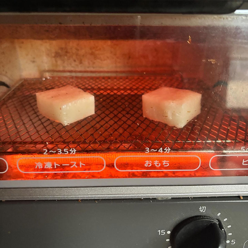 昨日杵と臼でついた餅を焼いて