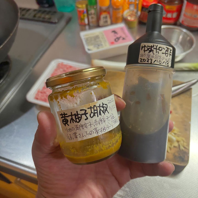 自家製の柚子胡椒とゆずポン酢の和え物。