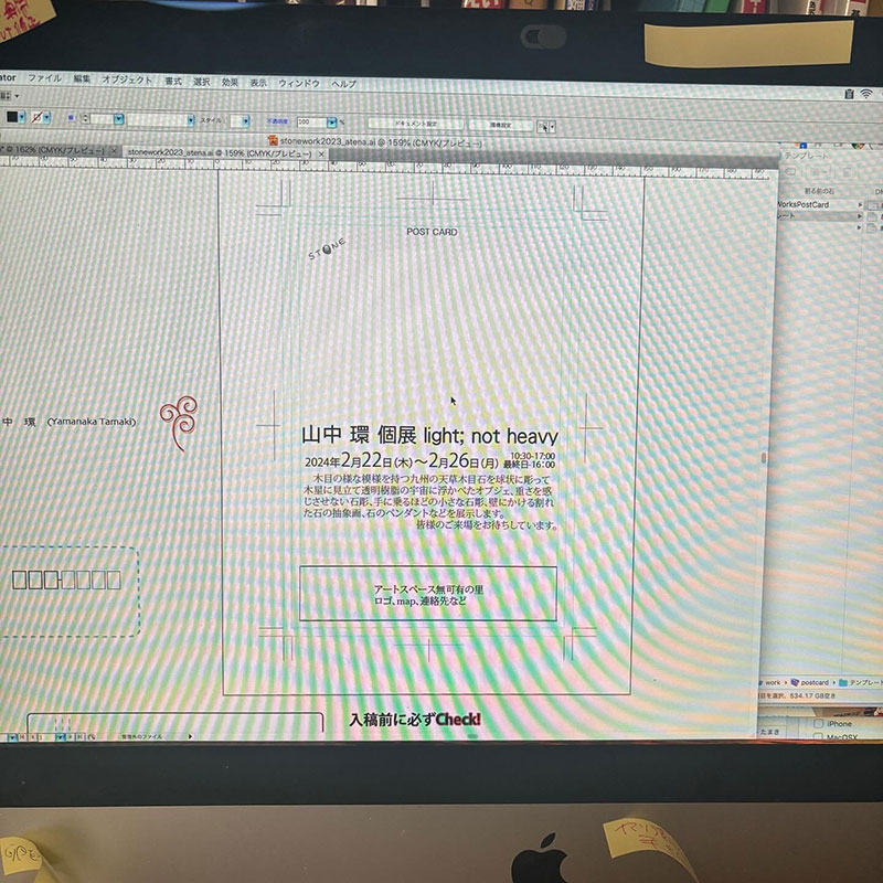 来年2月の個展のDMや出展作品全ての写真と詳細を一覧できるカタログ作成をMacで作業。