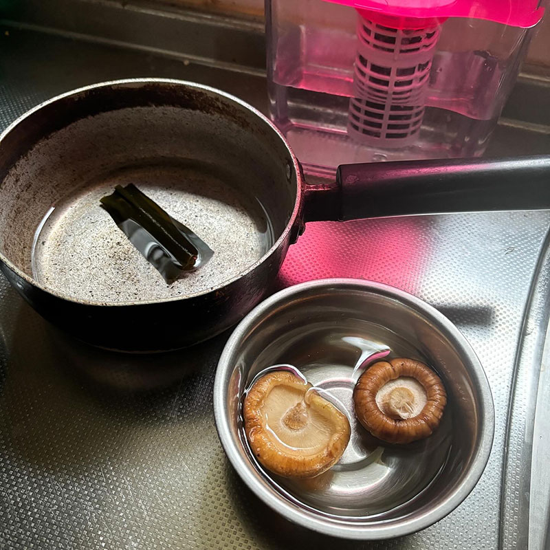 作り置きのかえしが無かったけど少しだけ作るのも手間なので出汁に直接醤油、みりん、ザラメを入れて炊いてつゆの完成。