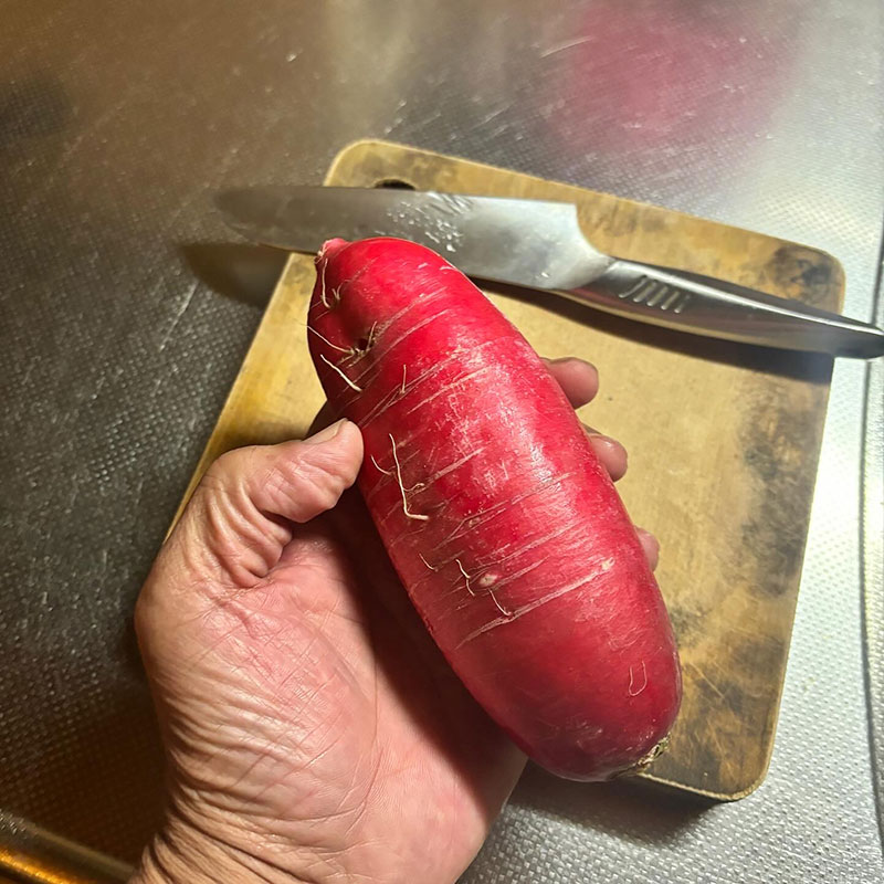 皮の赤い小さな大根