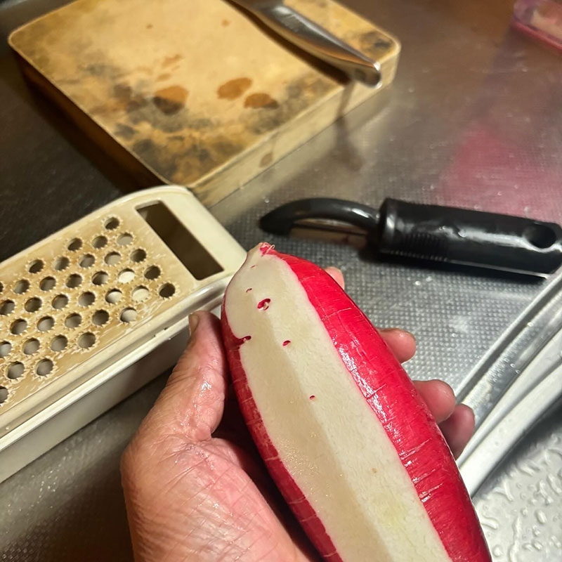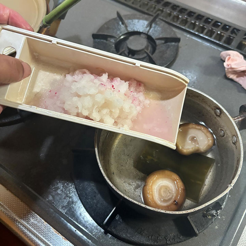 丸ごと一本すりおろして炊く。
