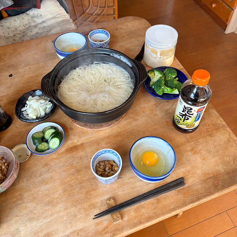 半田手延めん オカベの麺の昼飯。
