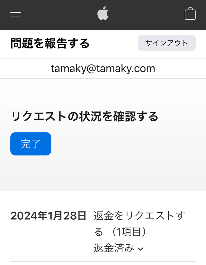 返金されてた。