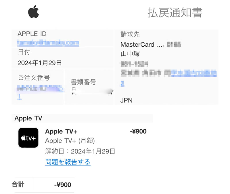 年末にiPhone15を買った。Apple TVの無料体験が3ヶ月プレゼントされるので申し込んでみたら普通に課金されお金を徴収されてた。