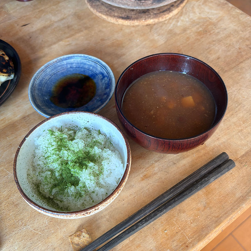 大根葉のふりかけかけて。