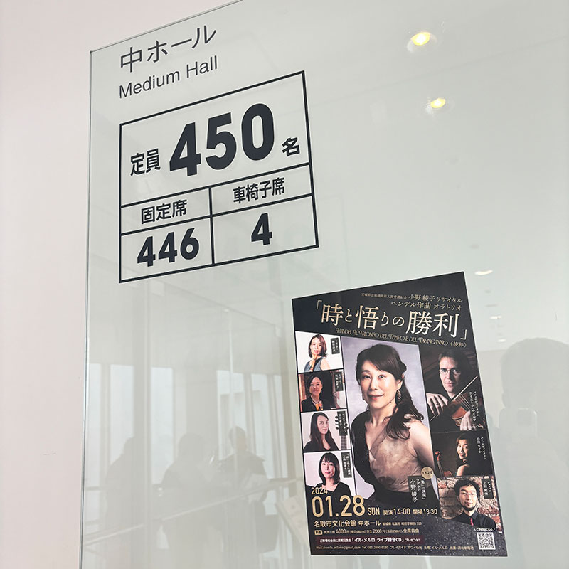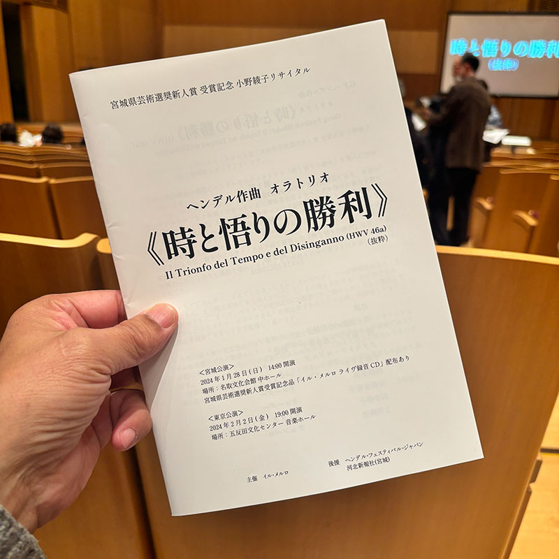 豊かで繊細な歌声は高音になっても変わらない。素晴らしかった。名取市文化会館の中ホールは音がよく響いて心地良かった。