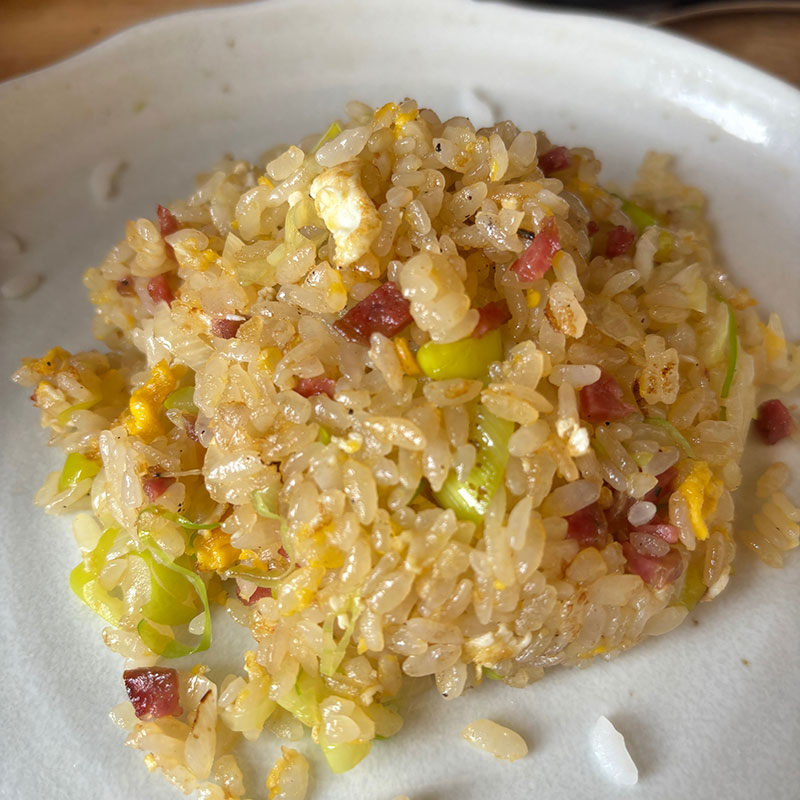 サラミ入りの炒飯 永谷園のお茶づけ海苔と追い海苔で 杵つき餅を焼き入れてお雑煮。うまー。 昼の炒飯に焼豚の代わりに妹にもらったスペインのサラミを細かく切って入れたら いい感じで旨味でてた。うまー。 2024年1月16日 | コメントはまだありません | カテゴリー: 三日坊主日記