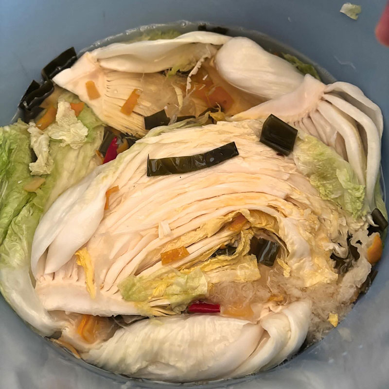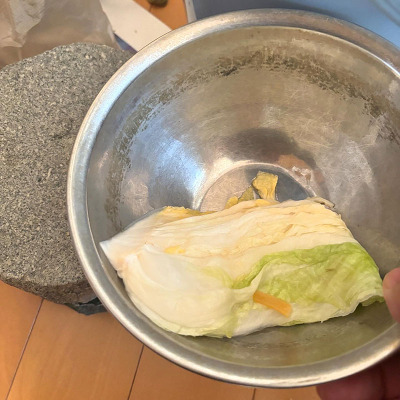 味見もしてみる。サラダ的な白菜漬けでもう食べられる。