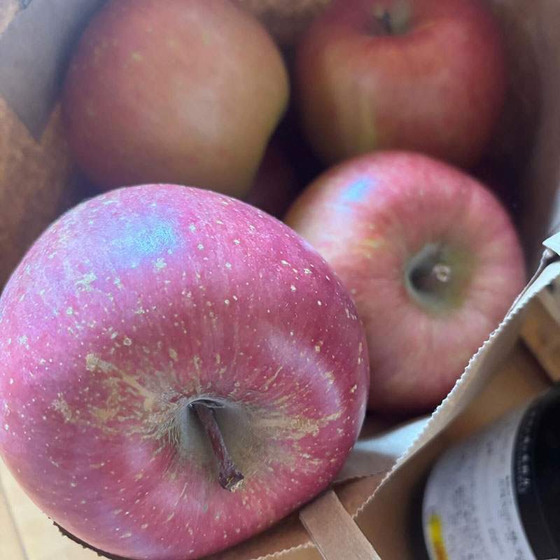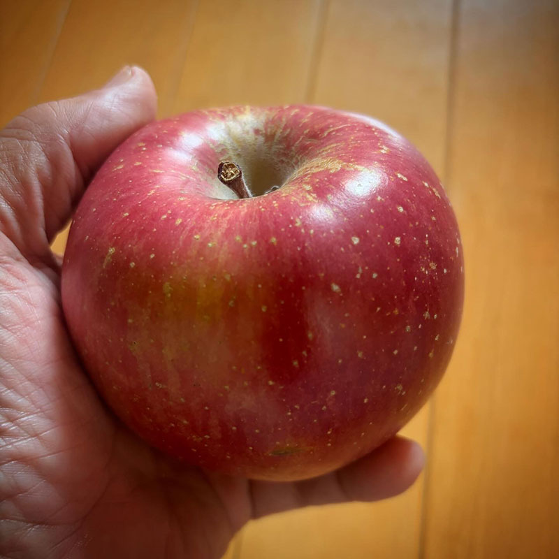 いただいた青森のりんごが大きくてツヤツヤ。