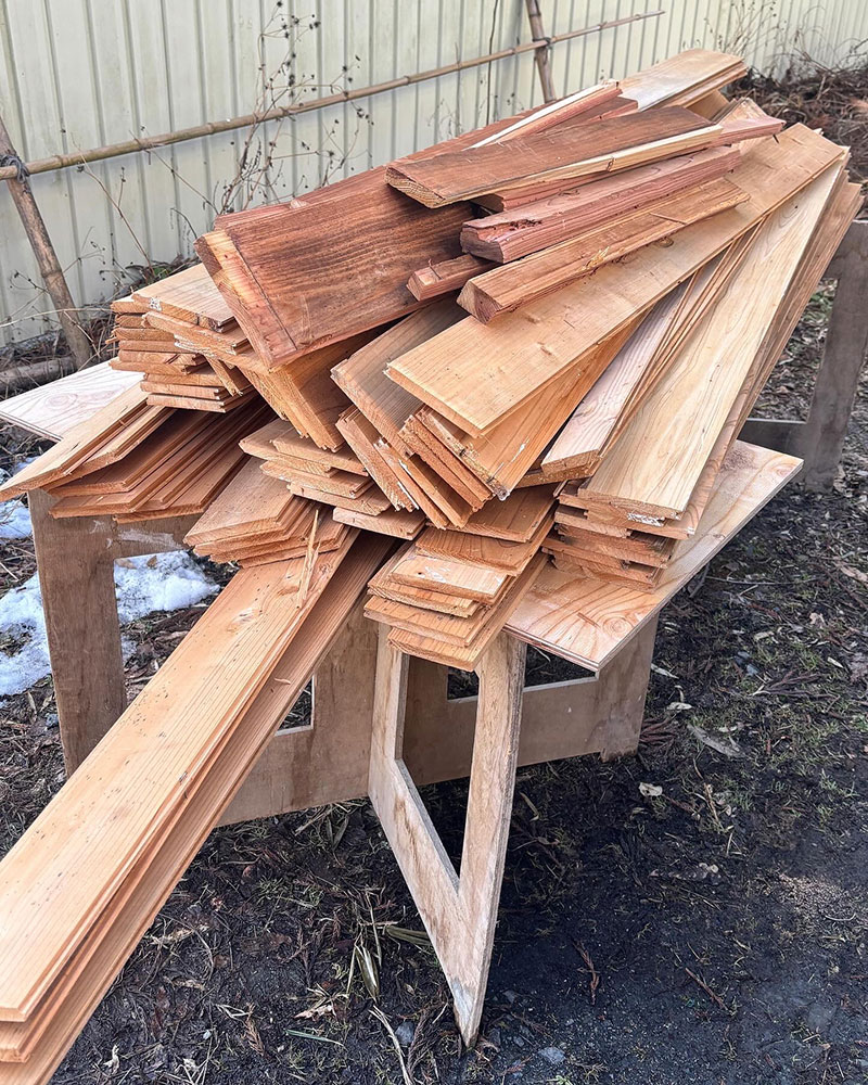 カミさんと家を作った時、お世話になっている地元の方の山で倒れて葉枯らししていたさわらの木を新築祝いにいただいた。