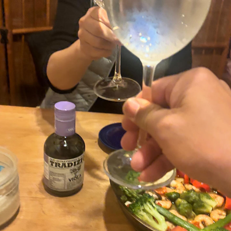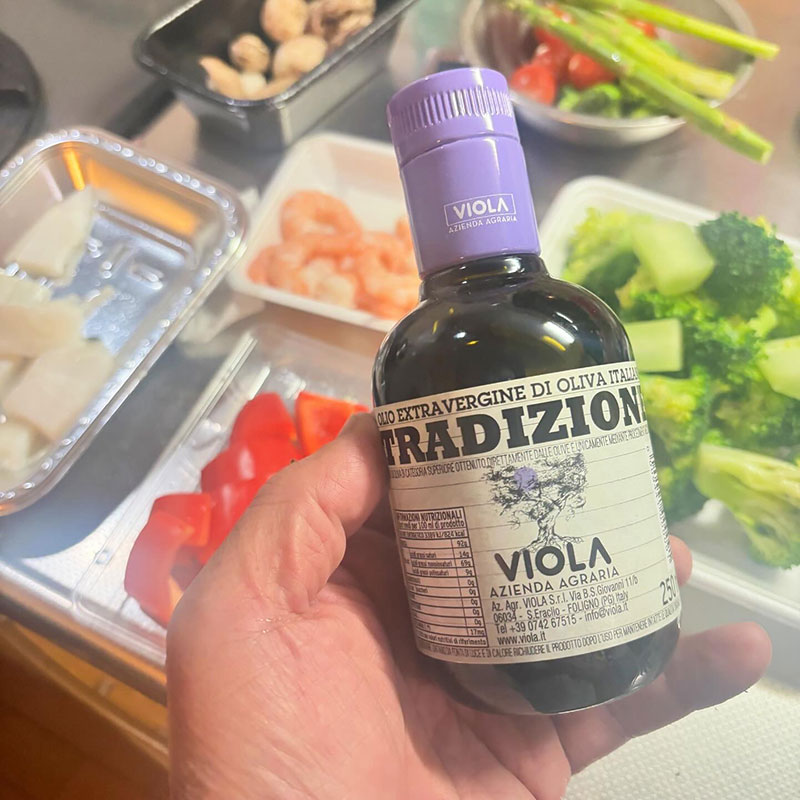 友だちの眞由美さん( @shoe.education )にもらったイタリアのエクストラ・ヴァージンのオリーブオイルがさっぱりしててアヒージョには最高だった。