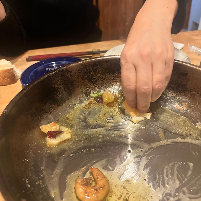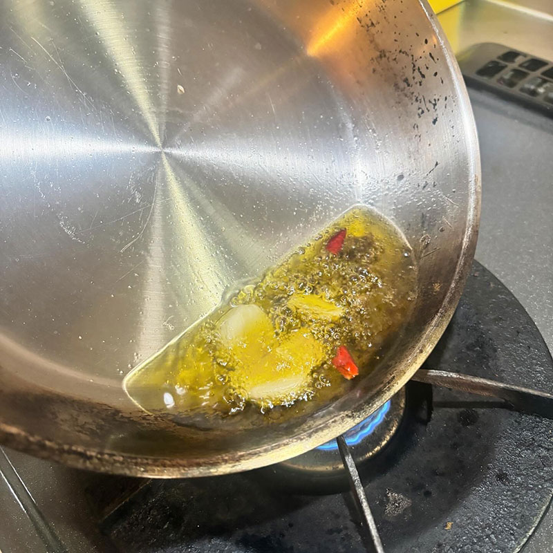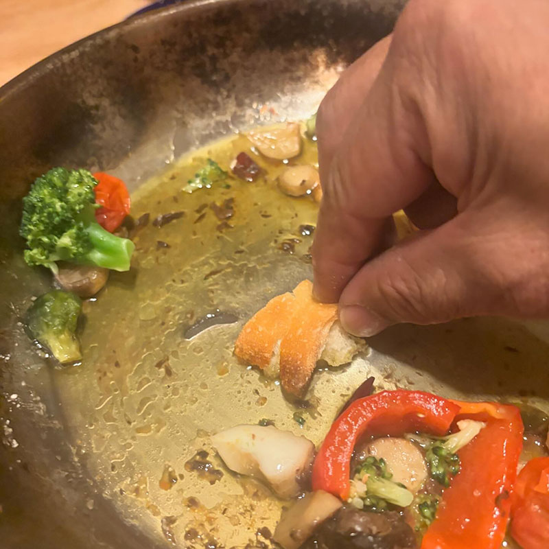 それとアンチョビ、ゲランドの塩とにんにく、自家製の鷹の爪で味付け。