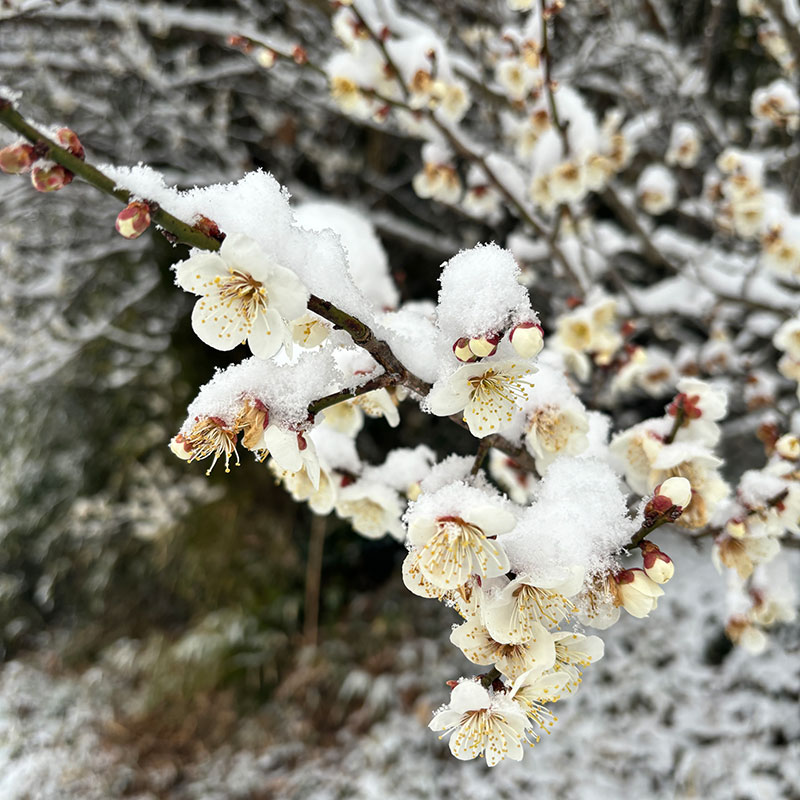 庭の梅の花にも