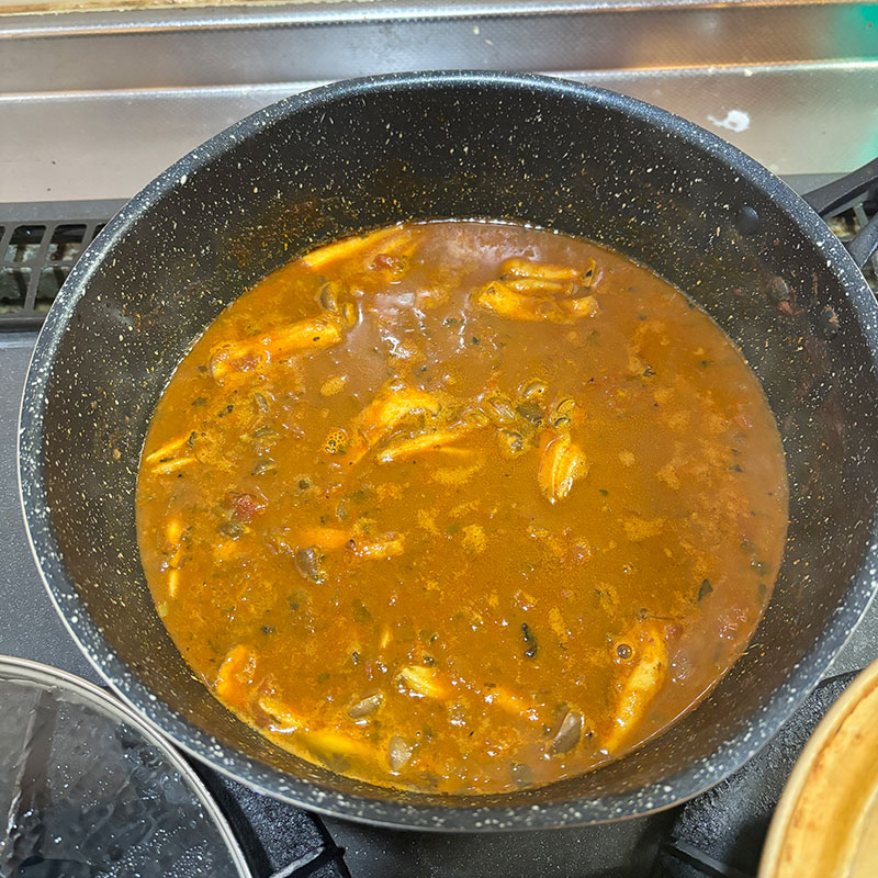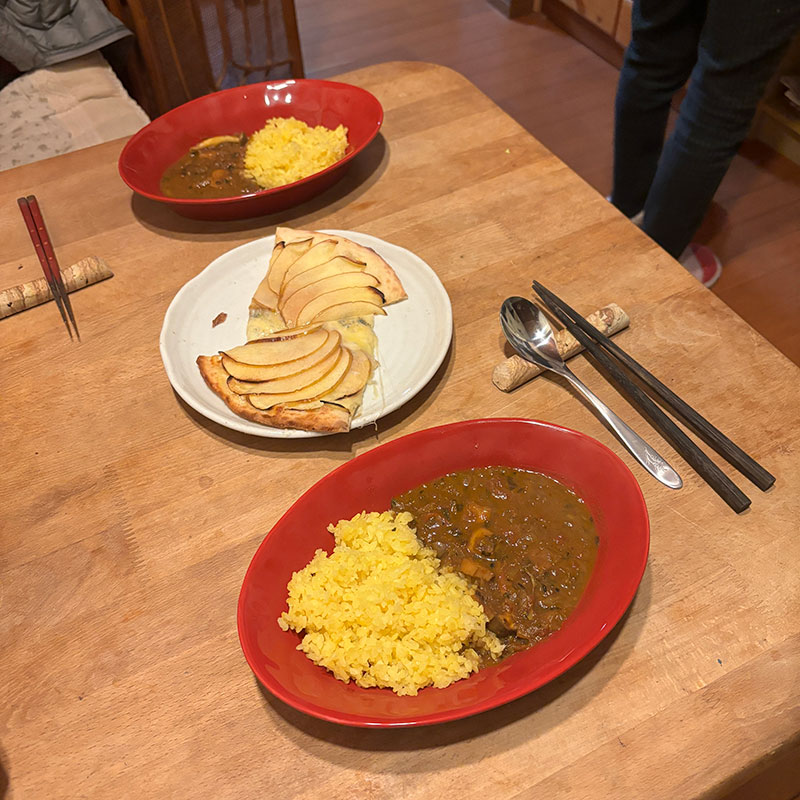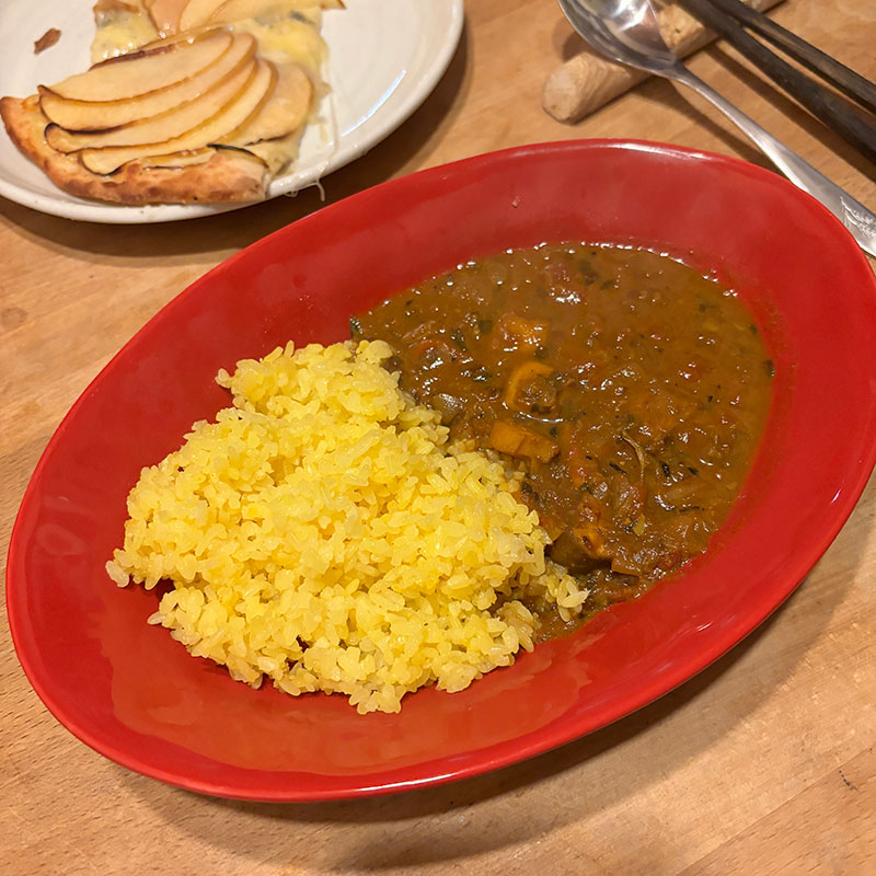 昨晩作ったシーフード・スパイスカレーの夕食。