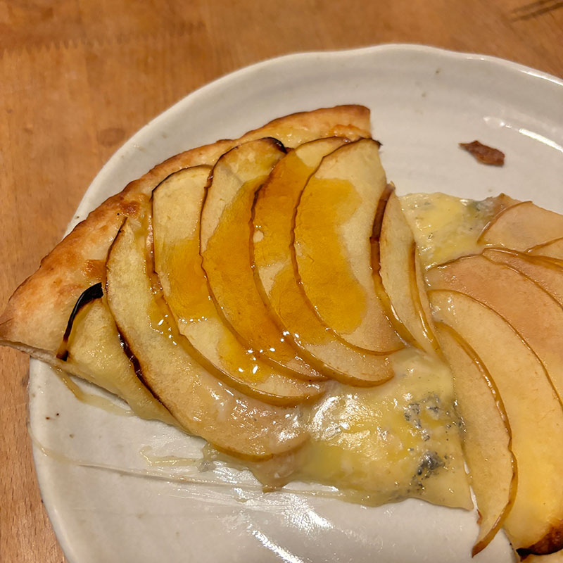 カミさんがゴルゴンゾーラとりんごのデザートピザお土産に持って帰ってきてくれた。