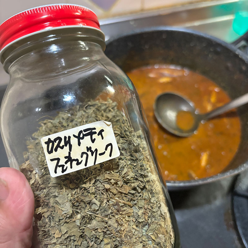 仕上げにフェネグリーク入れると香りが更に華やかになる。