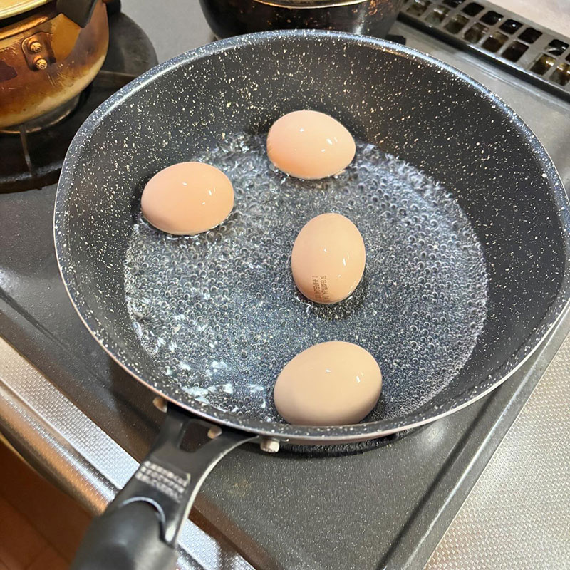 久しぶりに麻薬卵(ネーミング変えて欲しいw)仕込んだ。フライパンの1cmのお湯で半熟卵を蒸し焼きで作るってやつやってみたけど卵が新鮮だったから殻剥くの手間だった。