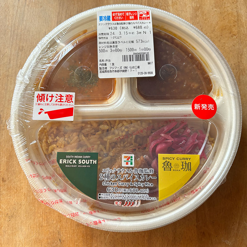 エリックサウス&魯珈監修2種のスパイスカレー。魯珈の斎藤絵里さんが修行したエリックサウスとの2種のカレーのあいがけ。なんて粋なコラボ企画セブンイレブン!