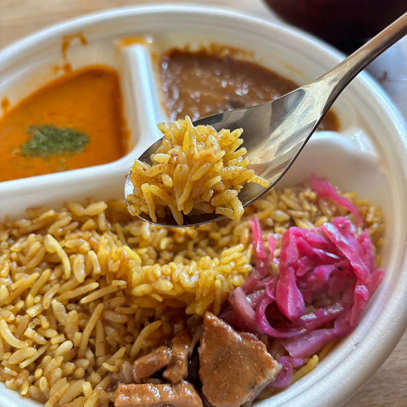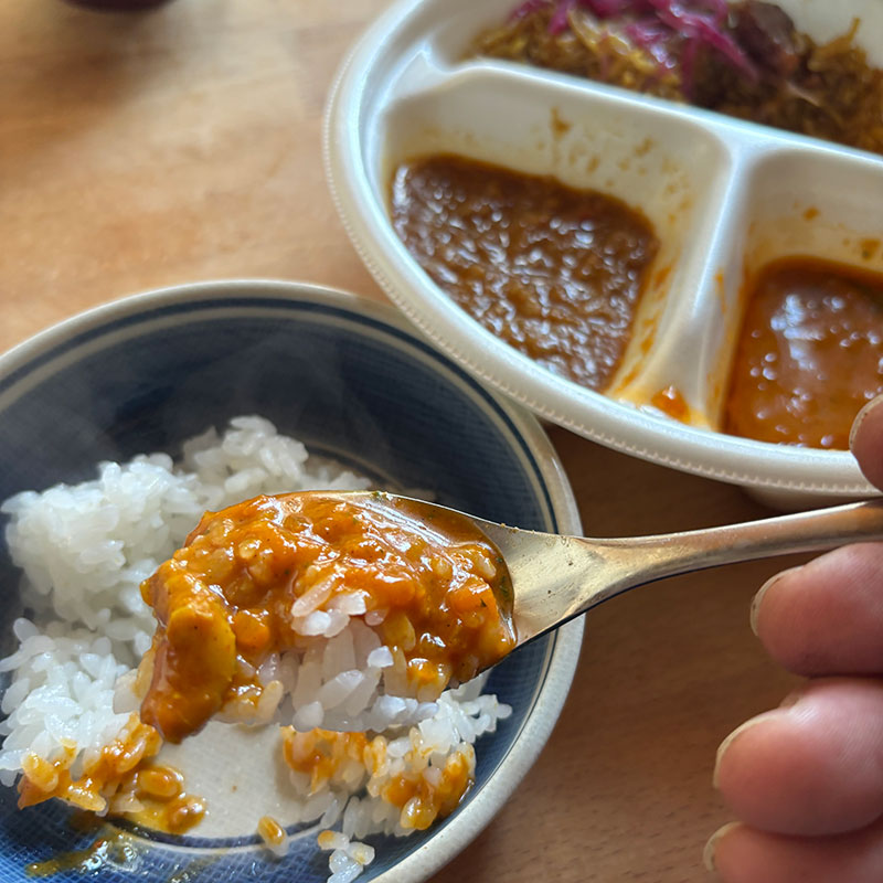 白米も用意してカルダモン香るエリックサウスのカレーと魯珈のクローブを効かせたカレーの味比べ。とてもコンビニのレンチン弁当とは思えない美味しさ。今回のスパイスカレーも堪能した。