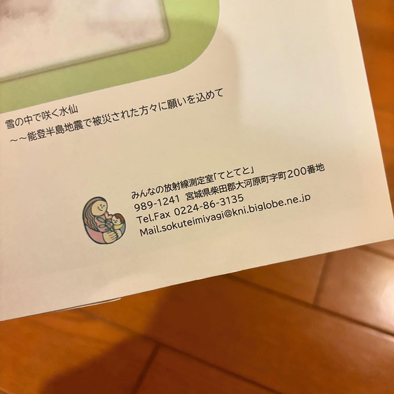 今年の春も、みんなの放射線測定室てとてとから「てとてと通信」が届きました。石川県の大地震。かつてこの地の原発建設を止めた市民がいたおかげで危機的な放射能事故を回避できたことをどれだけの人が知っているのだろう。さもなければ今頃放射能まみれだったんだよ。