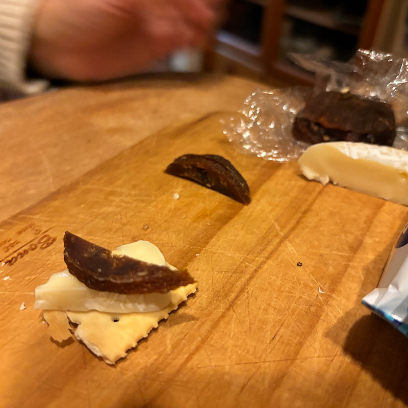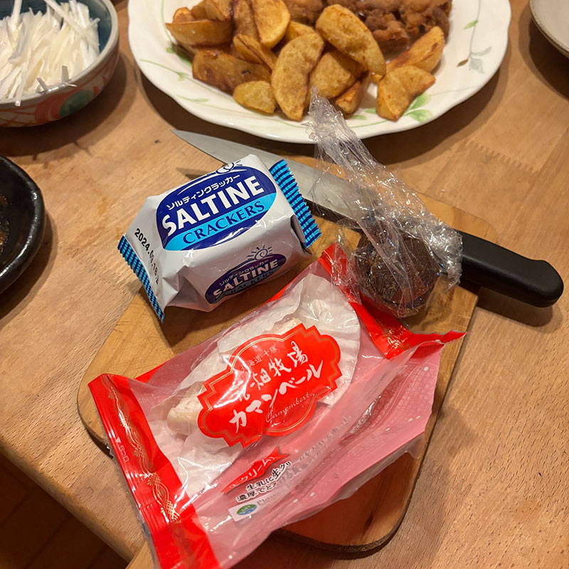 クラッカーに花畑牧場のカマンベールチーズと一緒に乗せて。