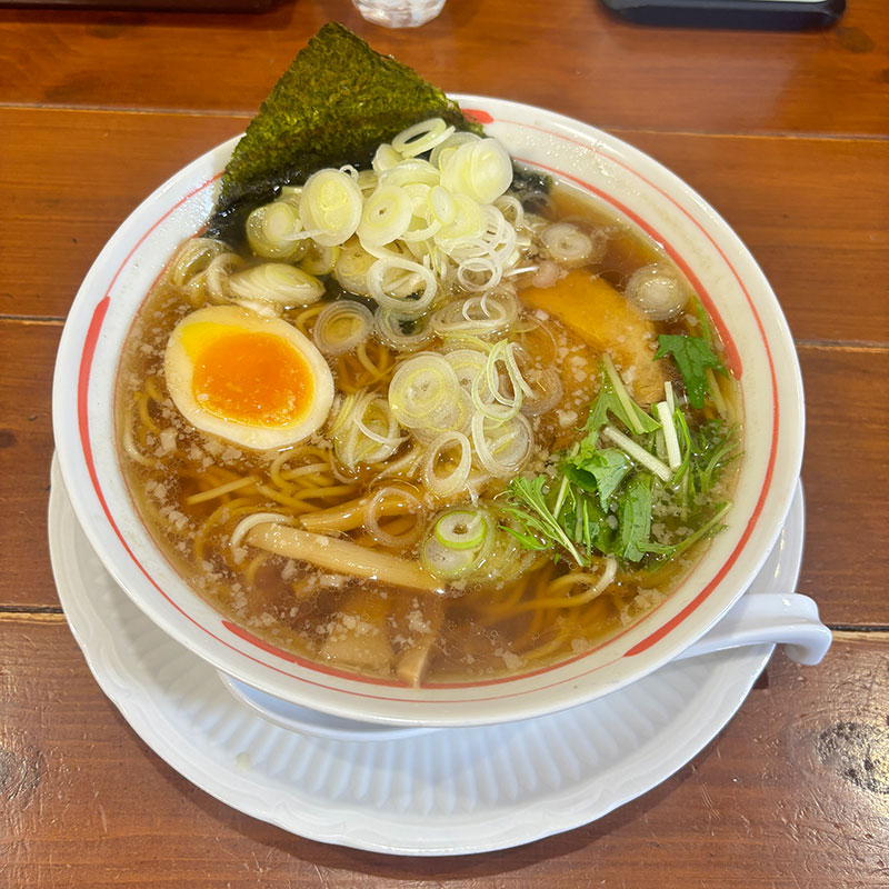 中華そば 850円、ネギ(100円)トッピング。
