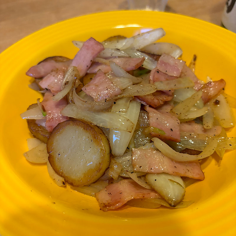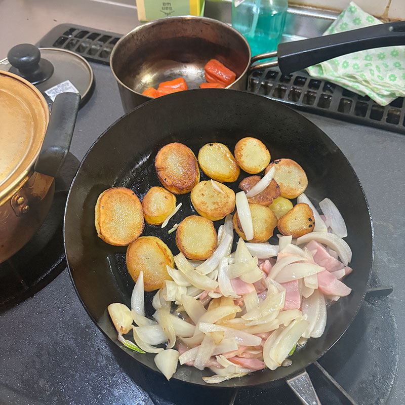 ジャーマン・ポテト作った。しっとりしたじゃがいもの両面にしっかり焼き色つけてカリカリに。