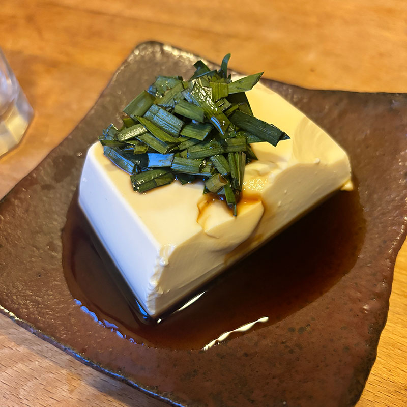 いただいたその年最初の一番ニラを漬け込んだニラ醤油で冷奴。