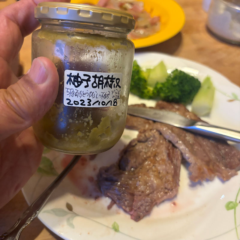 自家製の柚子胡椒の味変が