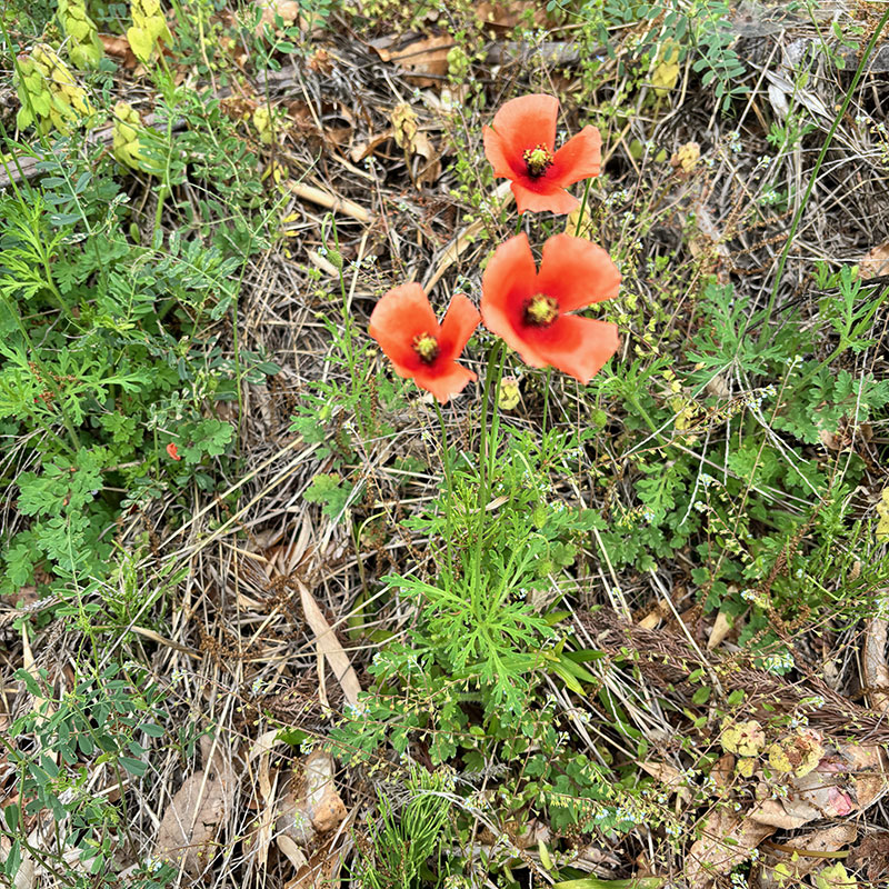 我が家の土手にナガミヒナゲシの花が3つ咲いていた。