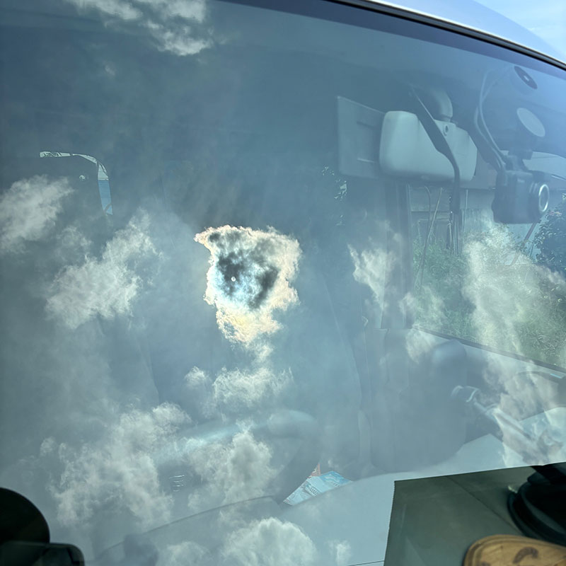 車のフロントウインドウに写っていた空。