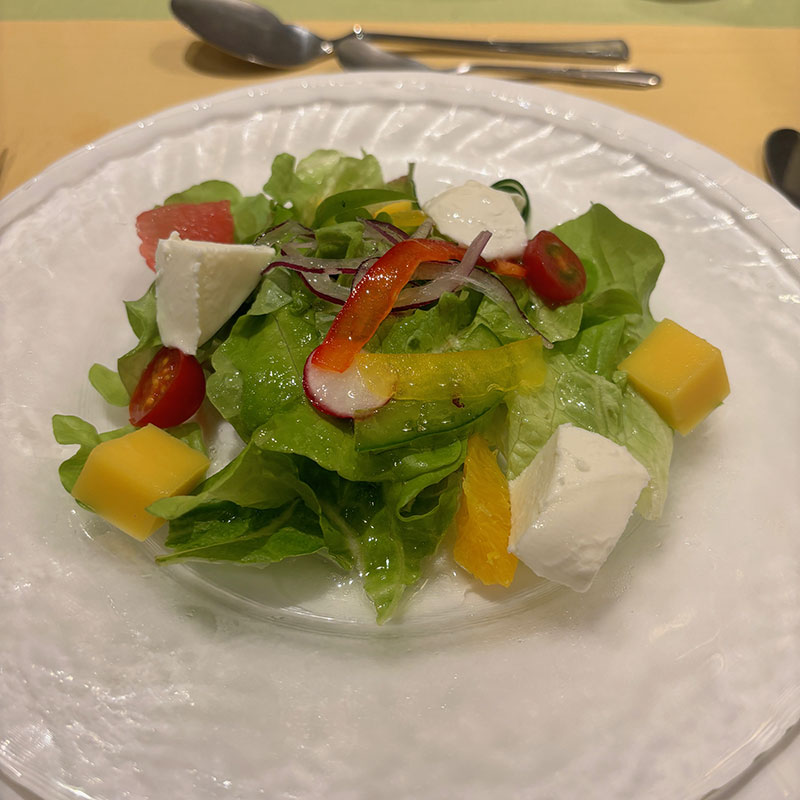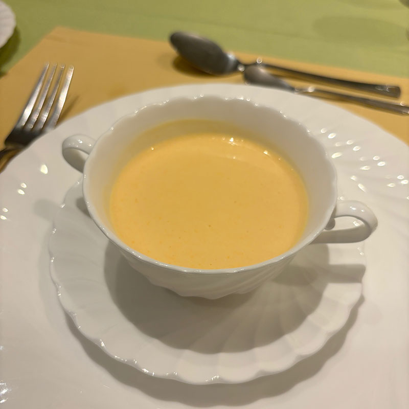 2種類から選べるスープはにんじんのクリームスープ。普通の野菜のコンソメスープにしなくて良かった。(一度頼んだのを注文し直した)滅茶苦茶美味しかった。