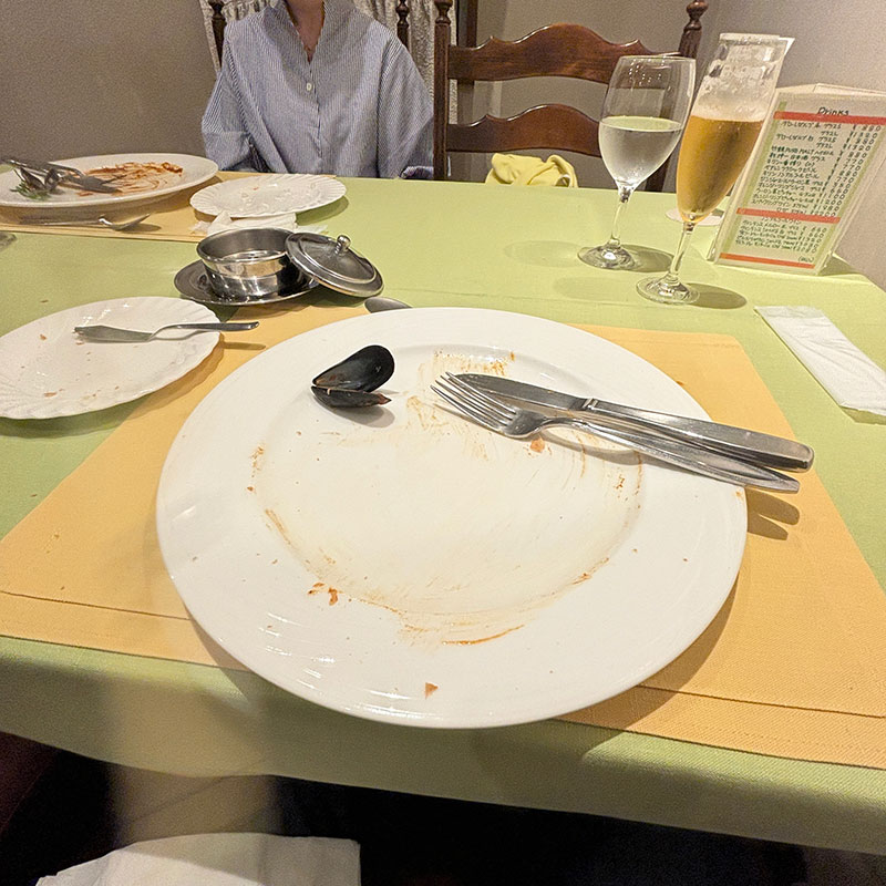 パンでハンバーグのソース残さずぬぐいとって食べた。