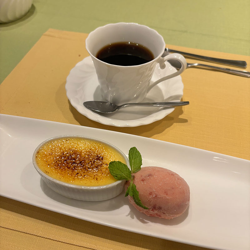 デザートで出てくると一番嬉しいクレームブリュレだった!そして苺のシャーベット。