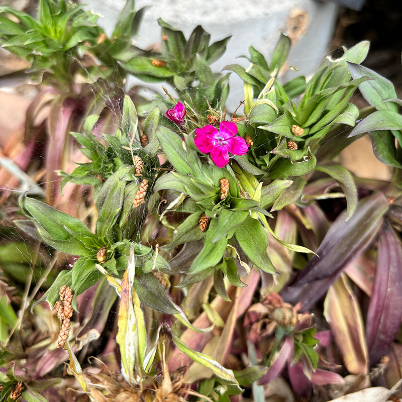 去年、種を蒔いたのに咲かなかったナデシコの最初の花が咲いた。