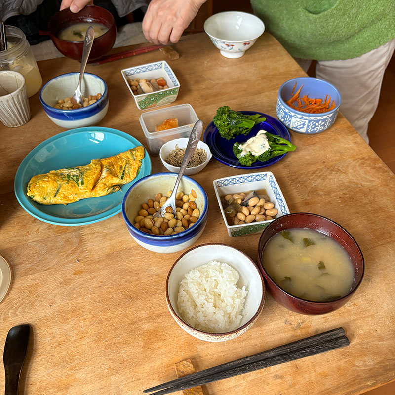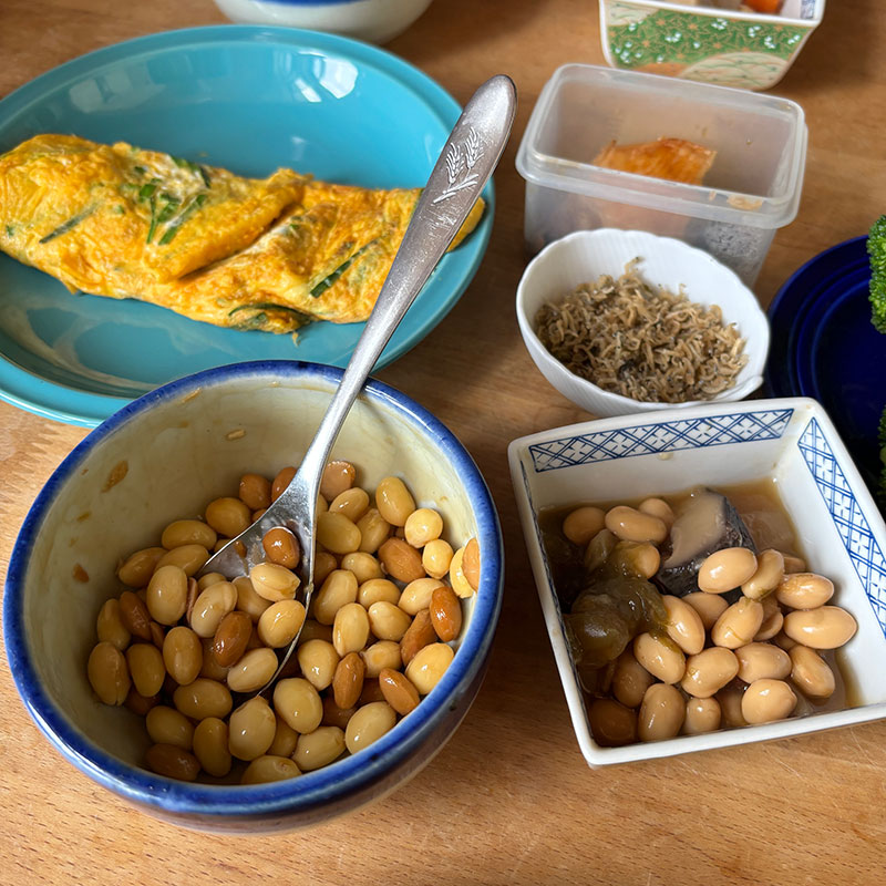 いただいた大豆でいっぱいの食卓。五目豆。