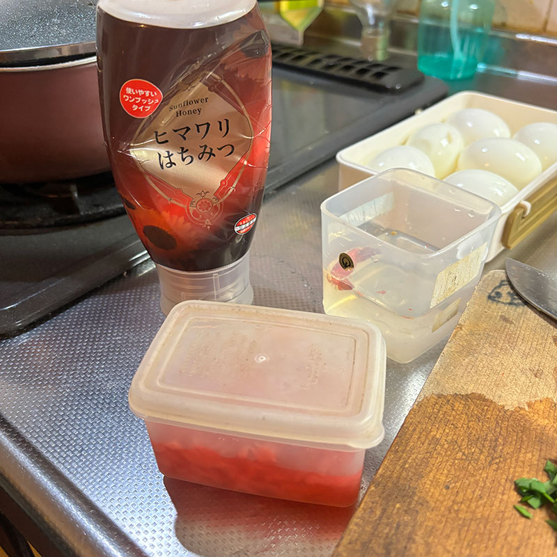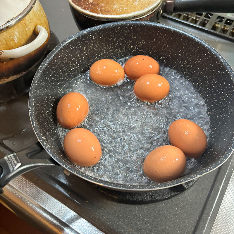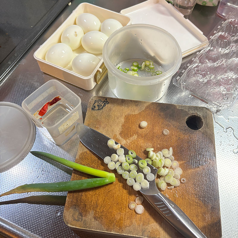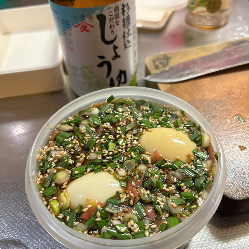 先日、近所の方に畑で採りたてのニラと卵のニラ卵セットいただいた。我が家でも卵買っていたので卵大臣になってしまった。味付け卵仕込んだ。