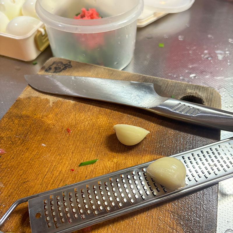 にんにくすりおろして。