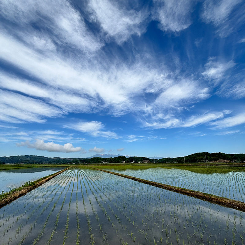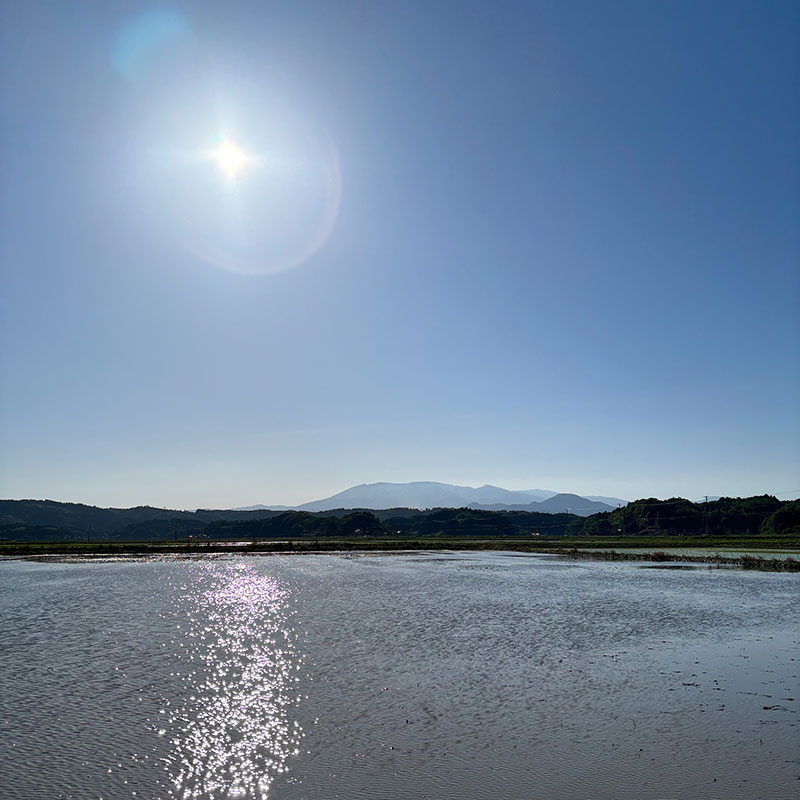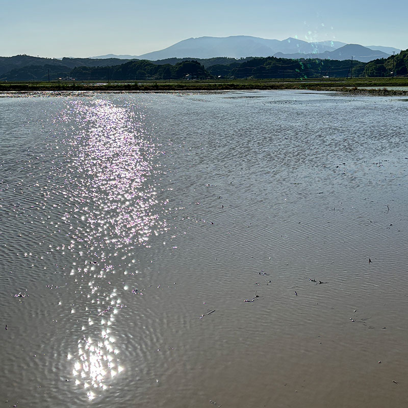 水鏡が太陽の光を反射して