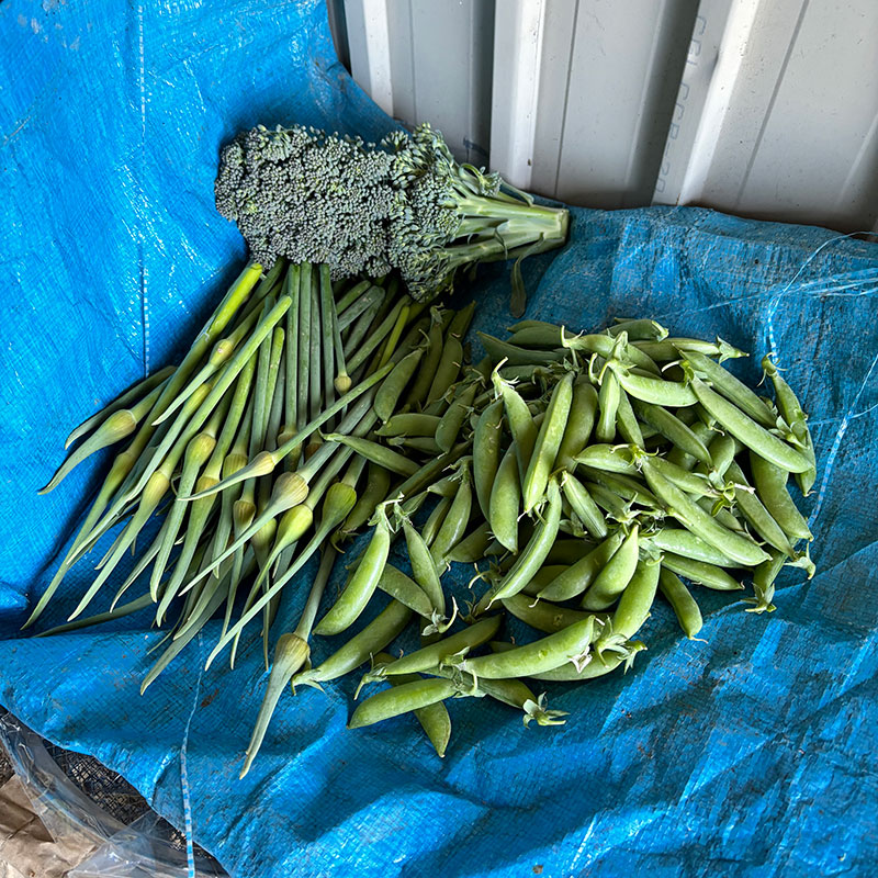 別の方からはアスパラガスとさやえんどう。