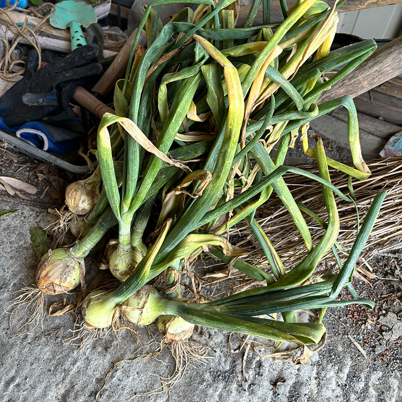 新玉ねぎがたくさん置いてあった。いつもありがとうございます。