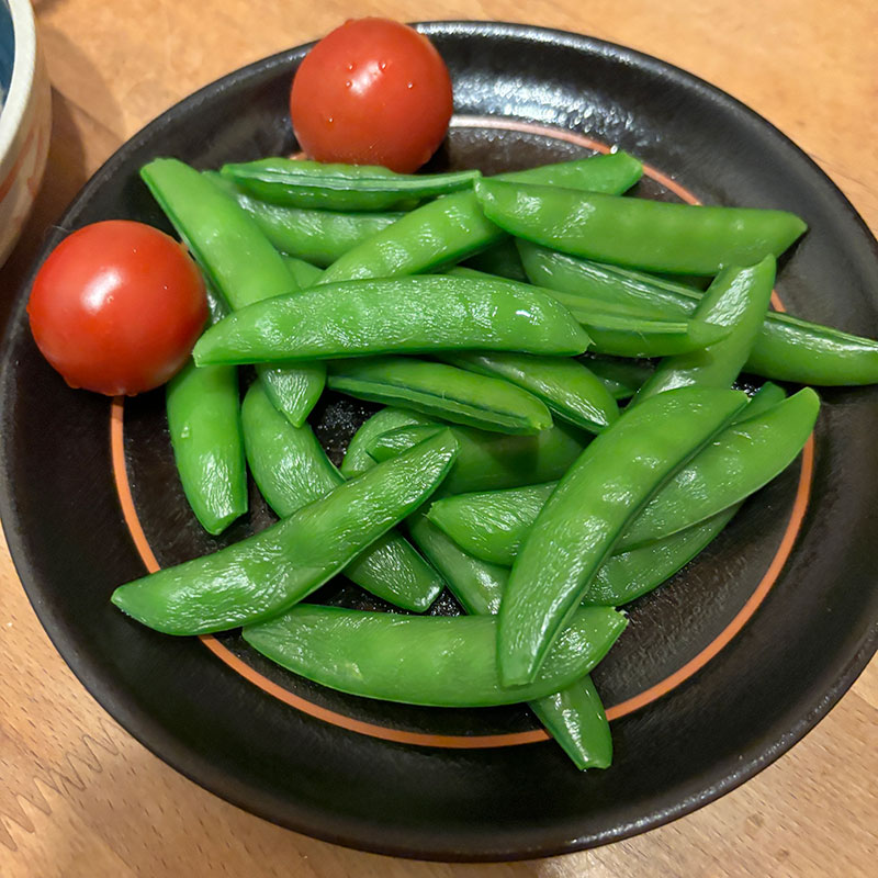 この時期のスナップえんどうはマヨネーズも塩もいらない。味が濃くて甘くて茹でただけで何もつけずに食べてる。うまー。